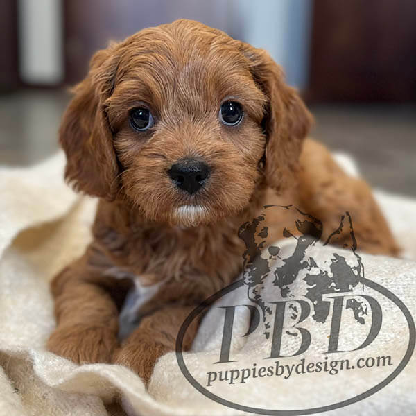 Once you have a cavapoo as a companion, there is a good chance you will never be satisfied with anything else.  Similar to finding your true love, the one made for you:  the cavapoo spoils you with love, affection, respect, and a desire to earn your affection in a way that creates the belief there could never be another better for you than the one you have.  Our cavapoos are a cross between a Blenheim (color) Cavalier King Charles Spaniel and a Toy/Mini Poodle.  Cavapoos are very friendly/sweet dogs. They are very trusting and want to be friends with anyone and anything. They normally have a soft wavy-to-curly coat like a poodle, with minimal to no shedding.  We do have some that mimic more the cavalier coat, which grow up to be beauties as well.  We traditionally do not work with non-hypoallergenic breeds, but with the Cavalier’s sweet/forgiving disposition, adorable face, long floppy ears, big brows and loving eyes; we couldn’t resist. Our cavapoos will typically weigh around 12 – 20 pounds as adults.  Cavapoos are typically one of the easiest to train as they are very intelligent and eager to please! Learn more about the Cavapoo Breed.