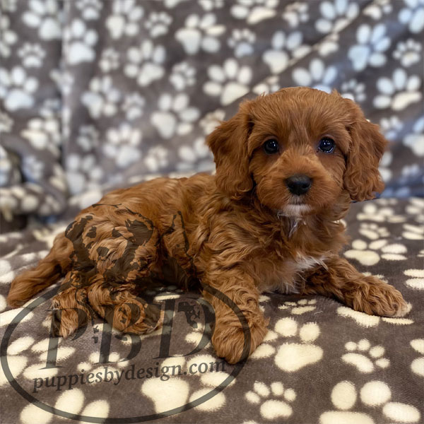 Once you have a cavapoo as a companion, there is a good chance you will never be satisfied with anything else.  Similar to finding your true love, the one made for you:  the cavapoo spoils you with love, affection, respect, and a desire to earn your affection in a way that creates the belief there could never be another better for you than the one you have.  Our cavapoos are a cross between a Blenheim (color) Cavalier King Charles Spaniel and a Toy/Mini Poodle.  Cavapoos are very friendly/sweet dogs. They are very trusting and want to be friends with anyone and anything. They normally have a soft wavy-to-curly coat like a poodle, with minimal to no shedding.  We do have some that mimic more the cavalier coat, which grow up to be beauties as well.  We traditionally do not work with non-hypoallergenic breeds, but with the Cavalier’s sweet/forgiving disposition, adorable face, long floppy ears, big brows and loving eyes; we couldn’t resist. Our cavapoos will typically weigh around 12 – 20 pounds as adults.  Cavapoos are typically one of the easiest to train as they are very intelligent and eager to please! Learn more about the Cavapoo Breed.
